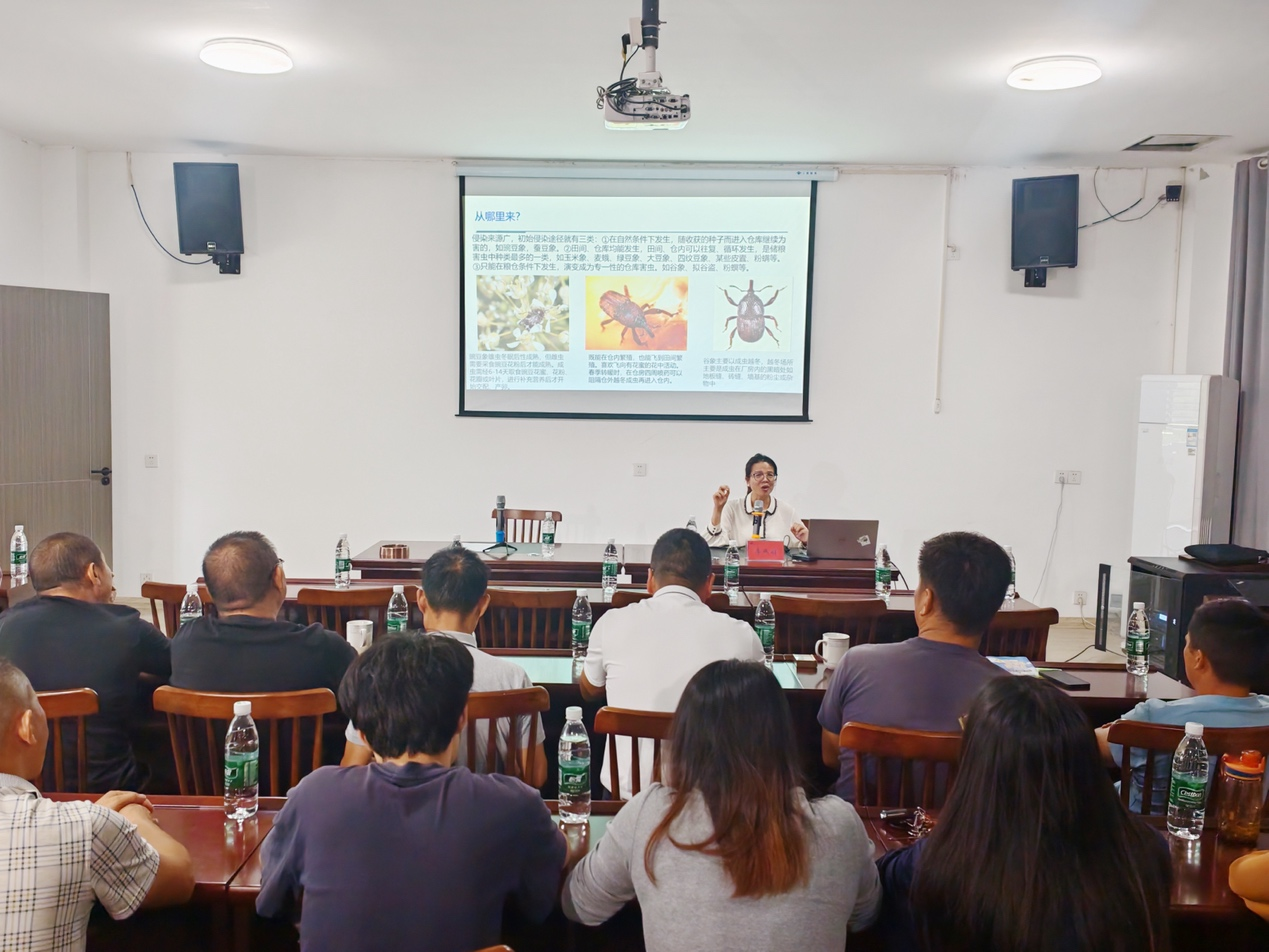 在明暢農(nóng)機專業(yè)合作社,李燕羽結(jié)合當(dāng)?shù)貙嶋H,以“助農(nóng)防控蟲和霉,守好家庭小糧倉”為題作報告,通過操作示范、視頻展示等方式,向當(dāng)?shù)剞r(nóng)戶介紹綠色儲糧技術(shù),受到廣泛好評。