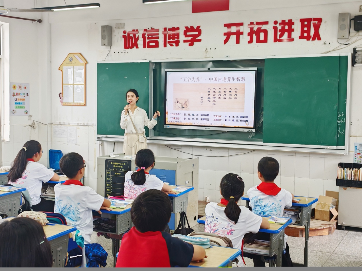 在青山鋪鎮(zhèn)中心小學(xué),翟小童圍繞“全谷物:從科學(xué)到餐桌的健康革命”作科普講座,通過通俗易懂的語言向孩子們講解全谷物營養(yǎng)健康知識,倡導(dǎo)大家在日常生活中優(yōu)化飲食結(jié)構(gòu),踐行國家全谷物行動計劃。授課現(xiàn)場互動積極,氣氛熱烈。